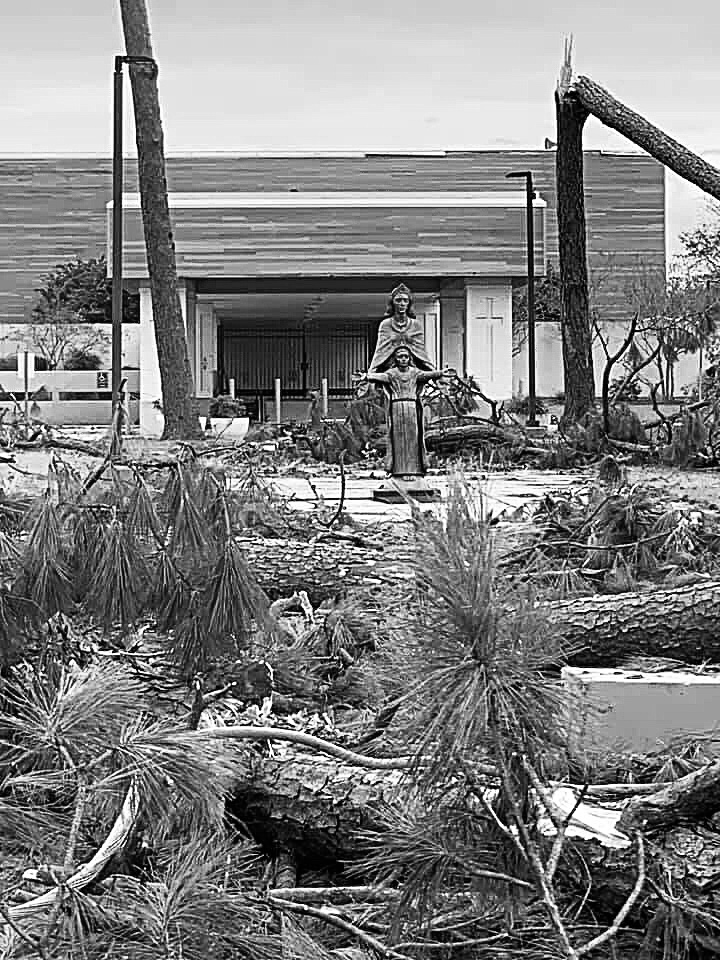 It’s been a week now since Hurricane Laura came through and devastated our city. The images don’t do it justice. We made national headlines and fodder for celebrity tweets because a statue called The South’s Defenders was twisted and toppled. That statue doesn’t represent the SWLA that I know. THIS ONE DOES, and I’ve blogged about it before. For years I kept a framed photograph near my desk of a statue on our church grounds taken after Hurricane Rita tore through our community in 2005. So much spoke to me about what was represented. Calm in the midst of the storm. Broken but standing. I sat near the base of that statue years ago and planned a life forward for my kids and I, and I’m asking for help for my community to do the same.