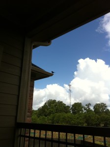 When I first discovered him, I was, yes, sitting on the balcony again, and I watched a neighbor walk past and point out to his wife the little bird in the bush. They stopped a minute, checked out the bird, then went on their way. As they walked away I heard the guy say matter of factly, “It’ll probably be dead tomorrow. It’s sitting on the ground where anything can get it. It can’t even fly yet, and it’s probably hungry.” The guy was just making an observation and stating it matter-of-factly. Well, I jumped up, ran downstairs (with my phone of course) and sought out the baby bird. I’m a super steady photographer, so it’s your own fault if you choose to watch the clip and get dizzy as a result, OK? Oh, yeah. You’ll also have to LEAN SIDEWAYS because I don’t know how to turn the video either. I’m WINGING it here ya’ll! (more…)