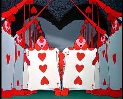 There were some characters from the story Alice in Wonderland that were eliminated from the movie versions so I won’t carry on with the chapter references anymore. I’m really more familiar with the movie versions now anyway thanks to the kids (even the creepy Tim Burton version with Johhny Depp) Here’s where I think I’ve ended up though now that the chapter, Summertime 2011, has come to a close: I’ve grown in some ways, shrunk in others (YAY!), experienced the highs and lows that come with any new journey and adventure, and I’ve managed to keep my head above water and be excited about what the future holds. I’ve been put through some trials and judged too, but as Alice says in the story everyone grows and that just can’t be helped. I guess I’m not really very quiet about it either so people can come after me like the guards that set off after Alice, but you know what? I can follow suit and call them out as mere cards that can easily be played or change hands with whatever way the wind blows. I’ll bet you that I can take the cards that I’ve been dealt and produce a winning hand at some point too. I just won’t hold up a house made out of them.