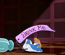 Alice grows, gets stones thrown at her which turn into cakes, eats them and shrinks. Hmmm… I ate cake this summer, and I PROMISE you I DID NOT SHRINK. I mean, I wish that when people hurled stones at you via insults or unwarranted criticisms they turned into little cakes because that would certainly be turning a negative into a positive, but for God’s sake don’t eat the damn cakes! Real life does not always coincide with fantasy here. Again this is an instance though where the Alice character and my own diverge. You know the bottles in the beginning that Alice drinks that say “drink me” and she shrinks? Yeah well I’ve done that too and the Skinny Girl Margaritas & Skinny Girl Sangria do NOT make you skinny. And the more you drink, the more likely you are to eat that box of goldfish that you bought for the kids and the “that’s one snack they like that I don’t so I’ll be SMART and buy those knowing I won’t eat them!” strategy fails. Eating AND drinking makes you grow bigger in REAL LIFE so don’t even try to be Alice.